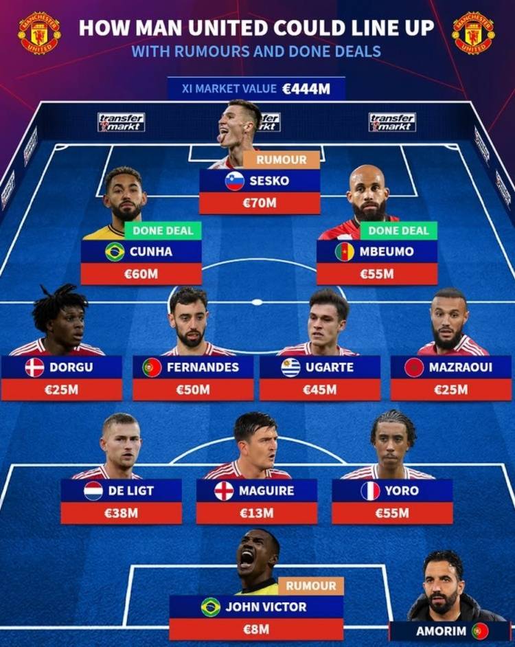 德转预测曼联主力阵:塞斯科&库尼亚&姆贝莫三叉戟,门将维克托